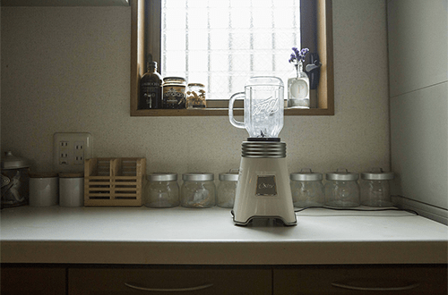 出産を機に出合ったマクロビオティック。ホールフーズの考えから、食材は丸ごと食べるようにしている。種や皮ごと入れられる〈オスターブレンダー〉は、日々のジュース作りに。