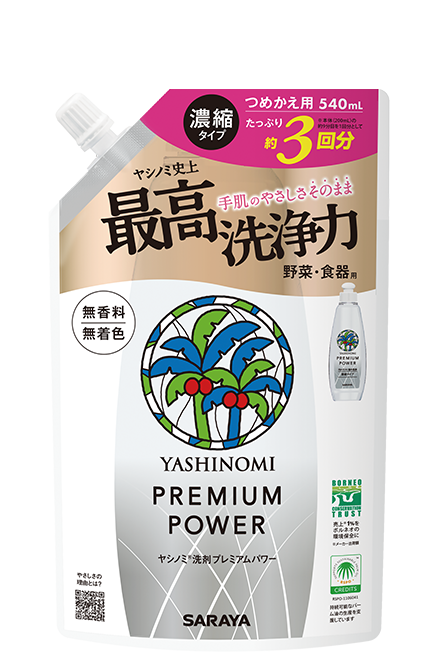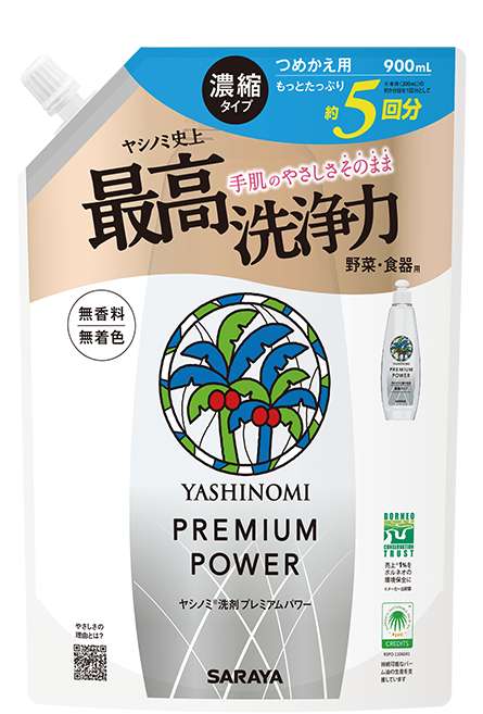 - ヤシノミ洗剤プレミアムパワーは、ヤシノミ史上最高の洗浄力と手肌へのやさしさを両立。